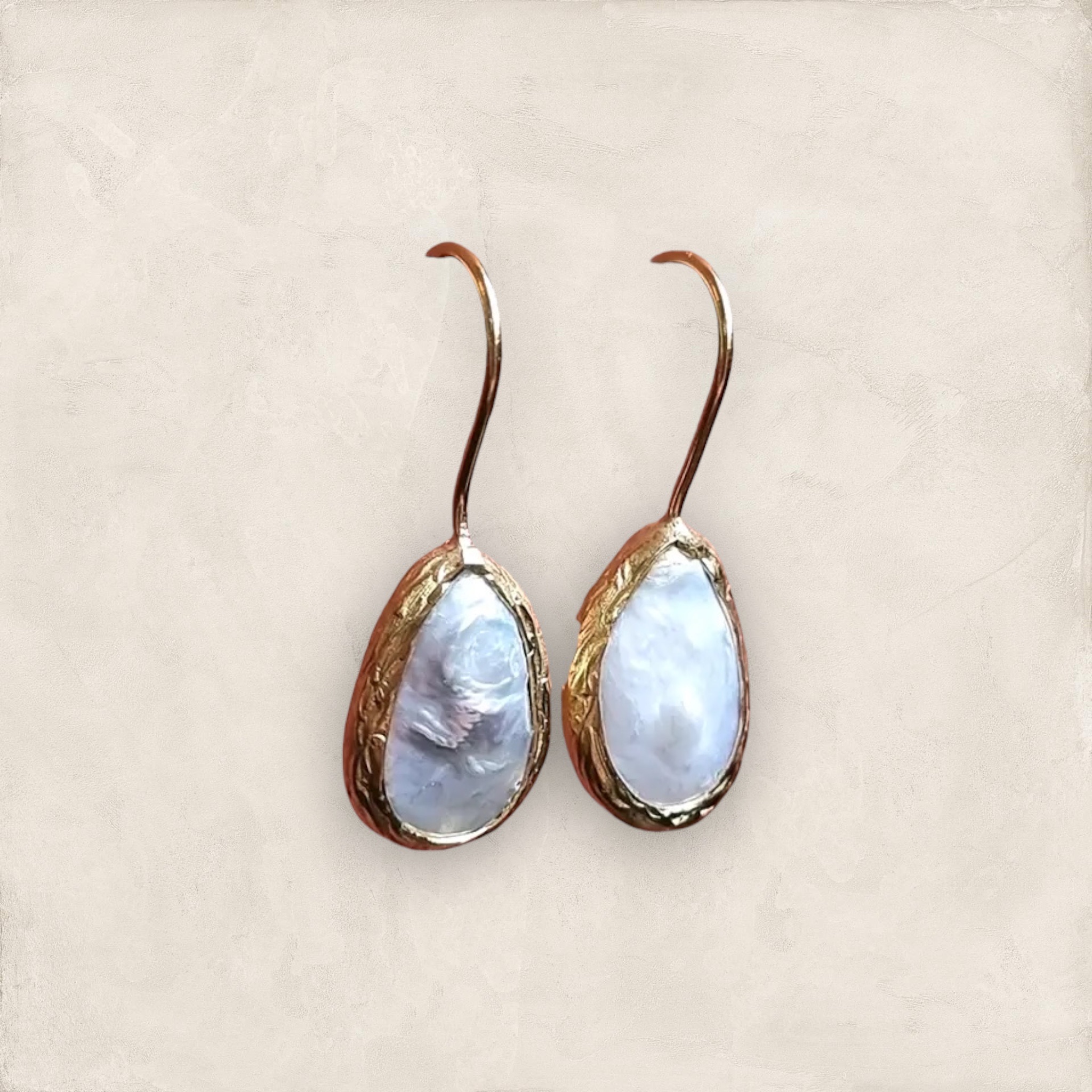Prachtige oorbellen van de onderlaag messing en dan goud 24K verguld. De bedel is Zoetwater Parel. Ze zijn totaal 2,5 cm lang.