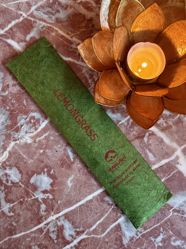 Heerlijke geurige wierook van Manushi Arts & Crafts. De wierook is Fairtrade, 100% Biologisch en met de hand gerold in Nepal. Gemaakt van natuurlijke kruiden, specerijen en oliën uit de Himalaya regio’s van Tibet en Nepal.